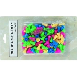 Дротики для духовой трубки состоят из двух частей. Первая часть пластиковая, задняя часть дротика. Вторая часть металлическая, сама игла. Игла вставляется в пластиковую часть. В упаковке 100 дротиков.