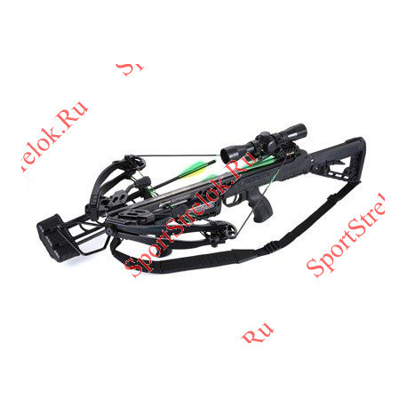 В полной комплектации: прицел оптический 4х32 с подсветкой,3 стрелы алюминь, натяжитель, подствольный кивер на 5 стрел, воск для тетивы, комплект ключей.